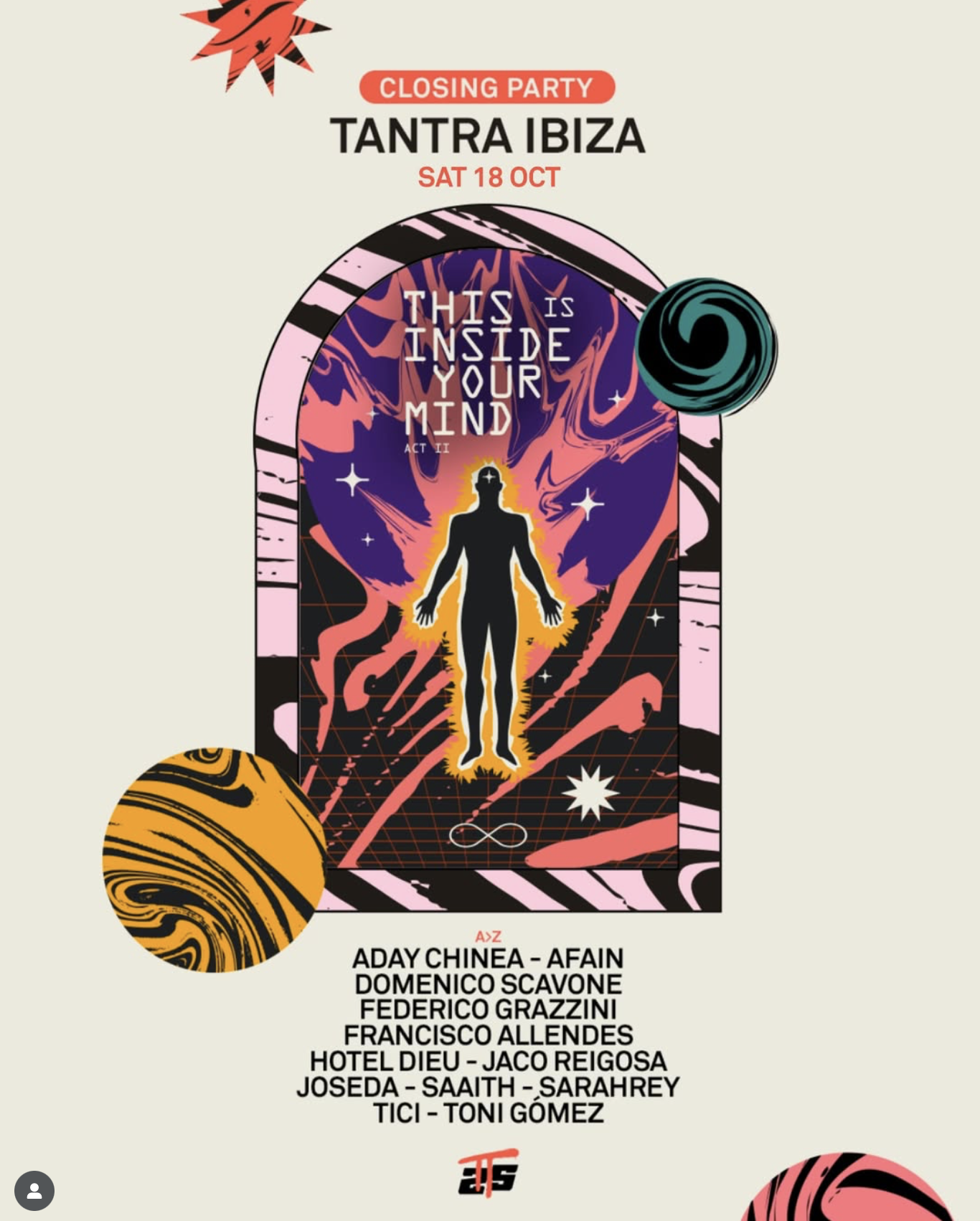 Bajo el lema “This Is Inside Your Mind – Act II”, el icónico club de Playa d’en Bossa prepara una última explosión de sonido con un line-up de alto nivel compuesto por nombres como Aday Chinea, Afain, Domenico Scavone, Federico Grazzini, Francisco Allendes, Hotel Dieu, Jaco Reigosa, Joseda, Saaith, Sarahrey, Tici y Toni Gómez, en un showcase que reunirá a artistas de la escena local e internacional.