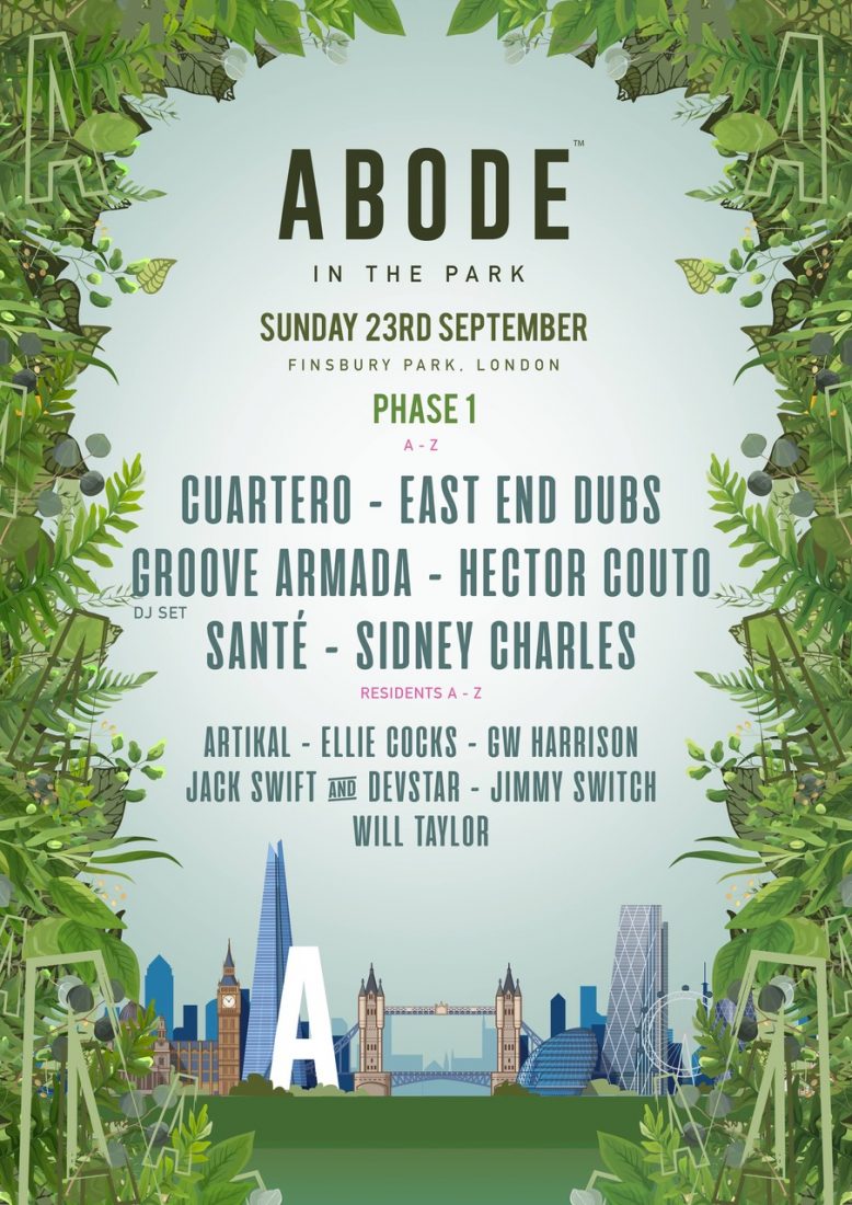 ABODE in the Park is the essential one-day festival and celebration of all things house from agenda setting UK party brand Abode. This year it returns bigger and better than ever to London’s Finsbury Park on September 23rd with popular residents plus first wave names Groove Armada, Sidney Charles, Hector Couto, Cuartero, Sante and East End Dubs.