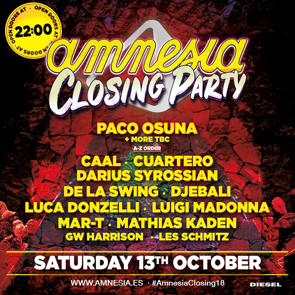 October 13th, Amnesia Ibiza Closing Party, the last dance of the season!