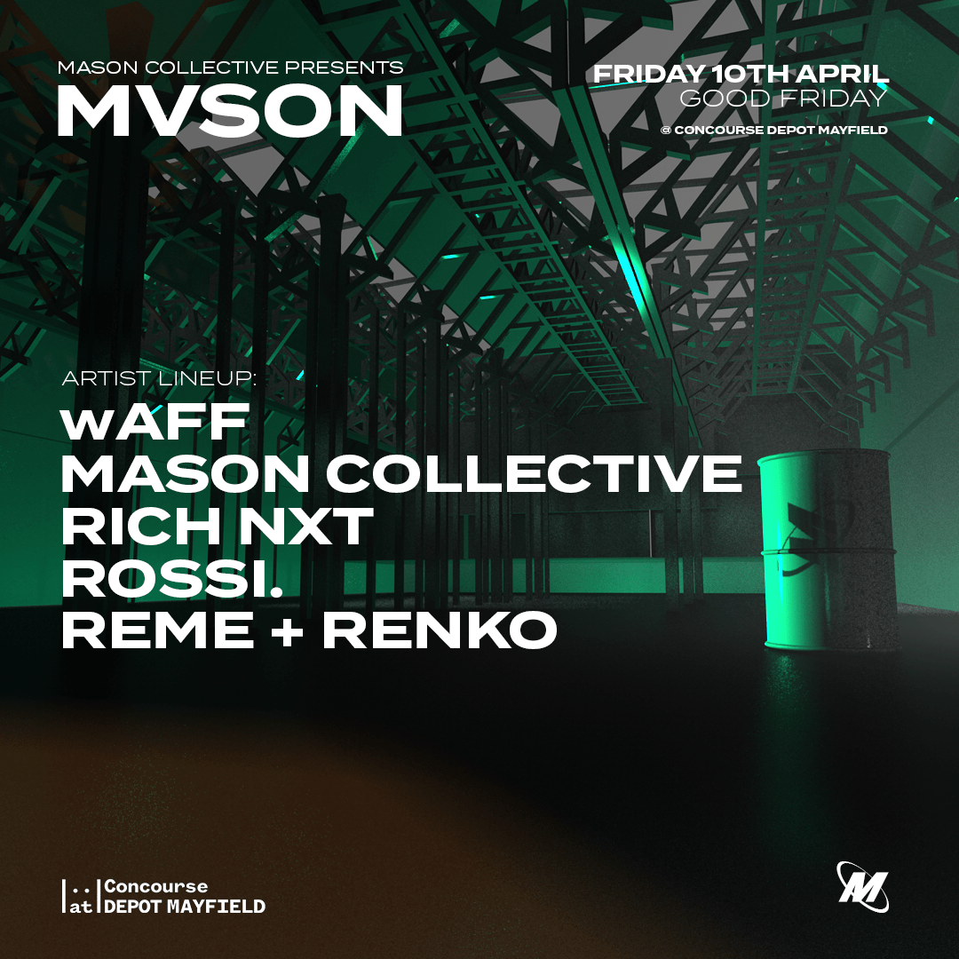Also announced are dynamic trio Mason Collective , flanked by wAFF, Rich NXT, Rossi. and Reme + Renko, for a night of high-energy house music and infectious grooves on 10th April.