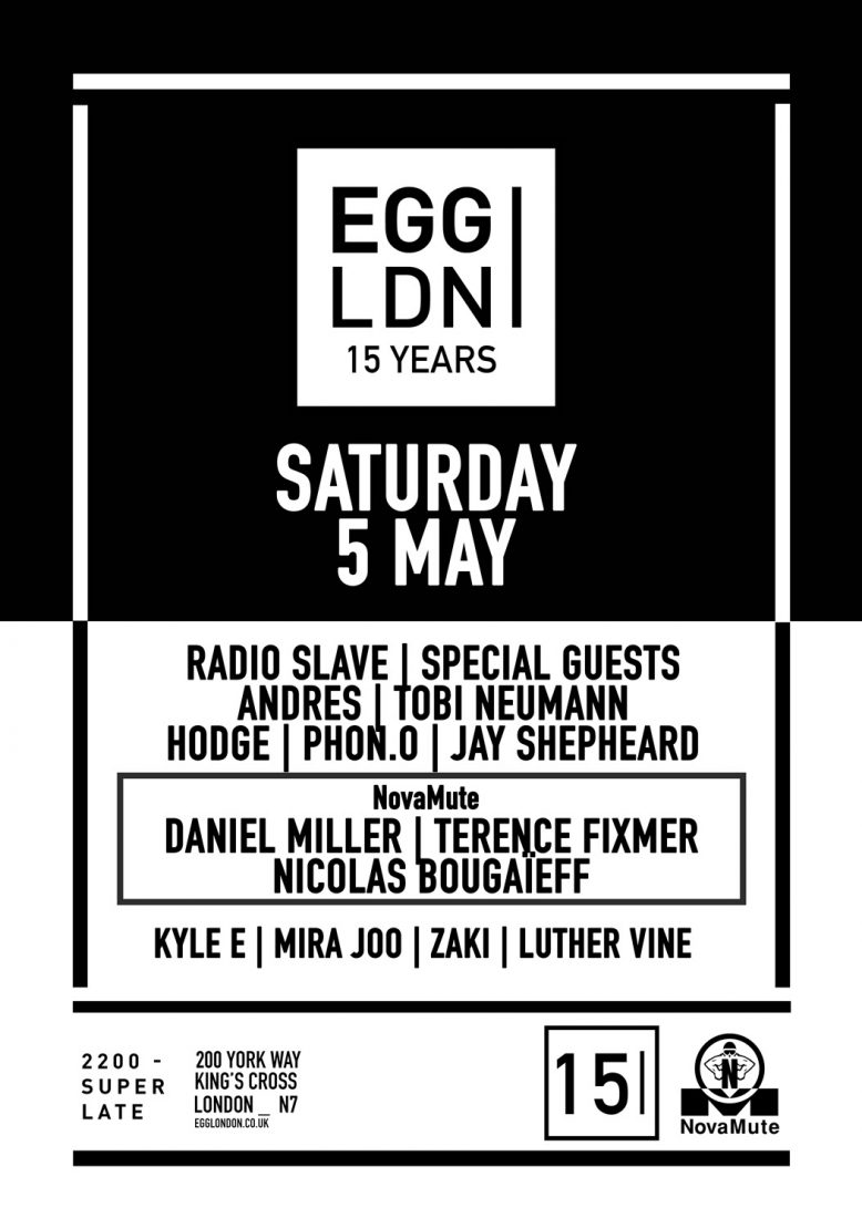 Egg LDN celebrate 15 years with Radio Slave, Terrence Fixmer, Andres, Hodge, Metalheadz and more