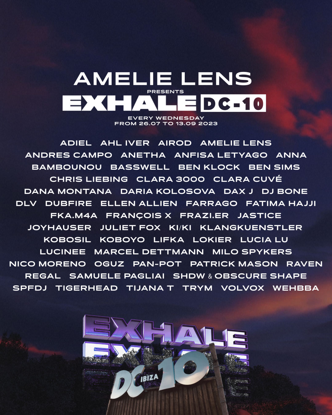 After a successful first year in Ibiza, the EXHALE community return for an 8-week residency at DC-10. Alongside the weekly club shows, starting July 26 and taking place every Wednesday till September 13, Amelie Lens revealed the full line up that will champion the future sounds of techno on the island.