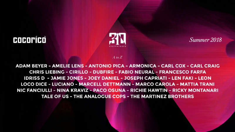 LEGENDARY ITALIAN CLUBBING INSTITUTION, COCORICÒ CELEBRATES 30TH ANNIVERSARY YEAR AND ANNOUNCES TECHNO SEASON LINE UP