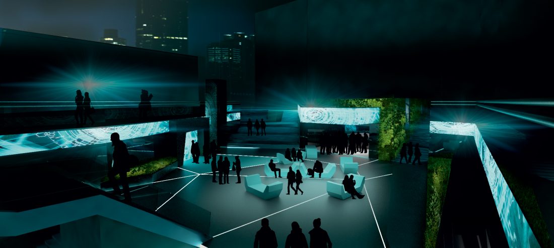 Industry-leading and award-winning agencies have been involved with MOMEM from the start. Atelier Markgraph has taken care of Design and Realisation, and Cosalux is a key digital partner that has helped to bring the concept to life. The MOMEM building itself is suitably futuristic for such a museum. There is a music theme to the design that sees inspiration taken from round 12″ records, square sleeves, and metal mesh based on sound systems and acoustic panels from the studio. Scaled-up reflections take cues from the idea of bass reflections, patterns will be made of slipmats, and a 360° sound wave panorama is a key visual element to the whole museum. It has a sleek design, high-tech visual displays and sharp lines. It is a multi-sensory space that brings together audio-visual experiences like never before.