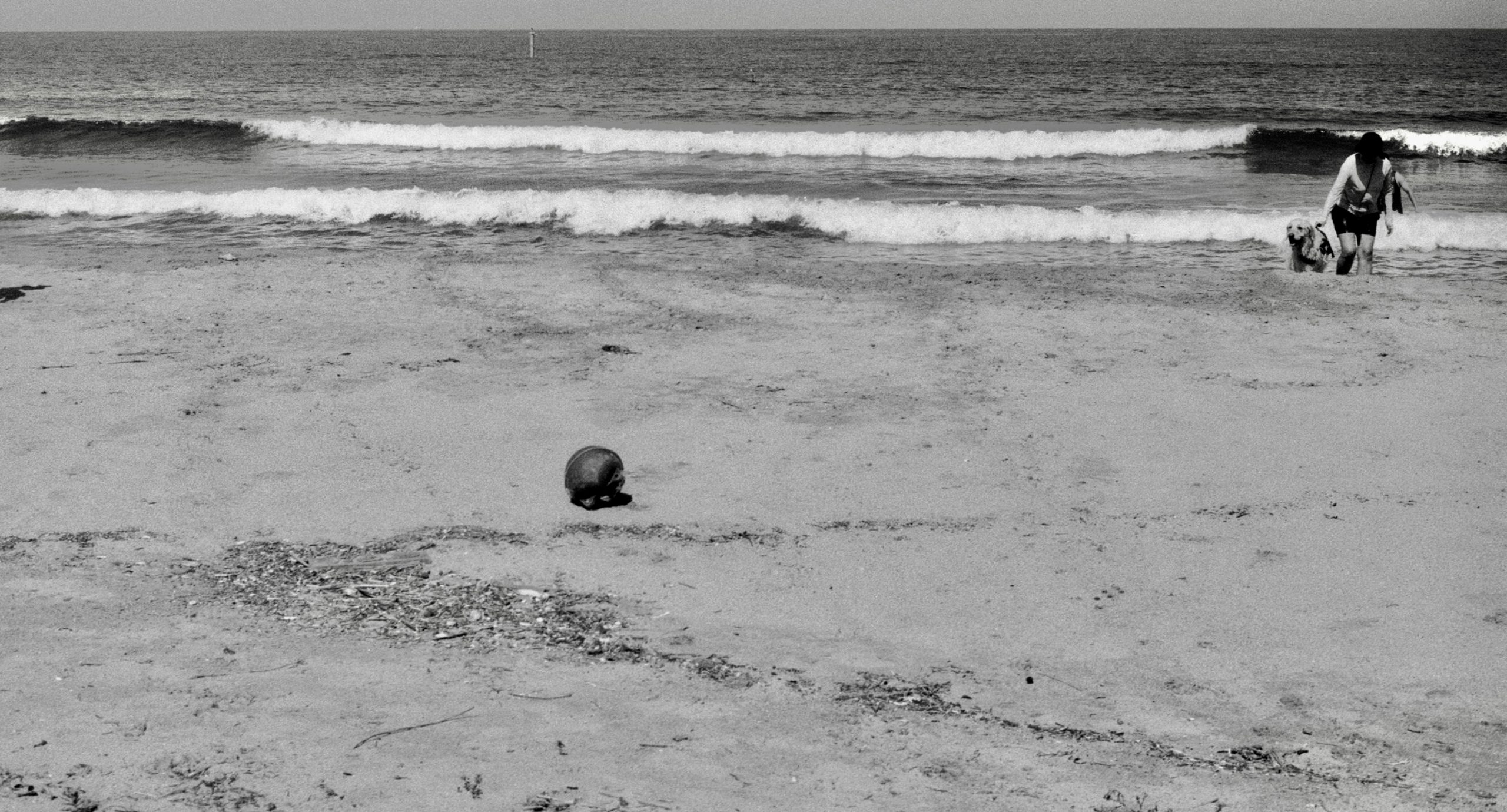 The water is full of swimming bodies. I wonder if they are immune to jellyfish when an old lady greets us with tea and nuts and offers us a seat. I say arigato gozaimasu, and next thing I self-immolate a back molar with the chew.