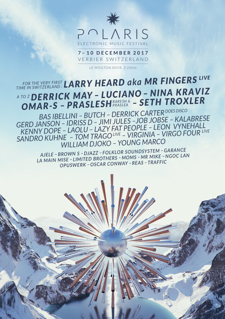 Polaris returns to Verbier from 7 – 10 December 2017 with another pool of unexpected and astonishing headliners. The Festival’s third edition program is a mix of house legends, essential names, electronic newcomers and Swiss talents, and  is a vibrant tribute to black music.