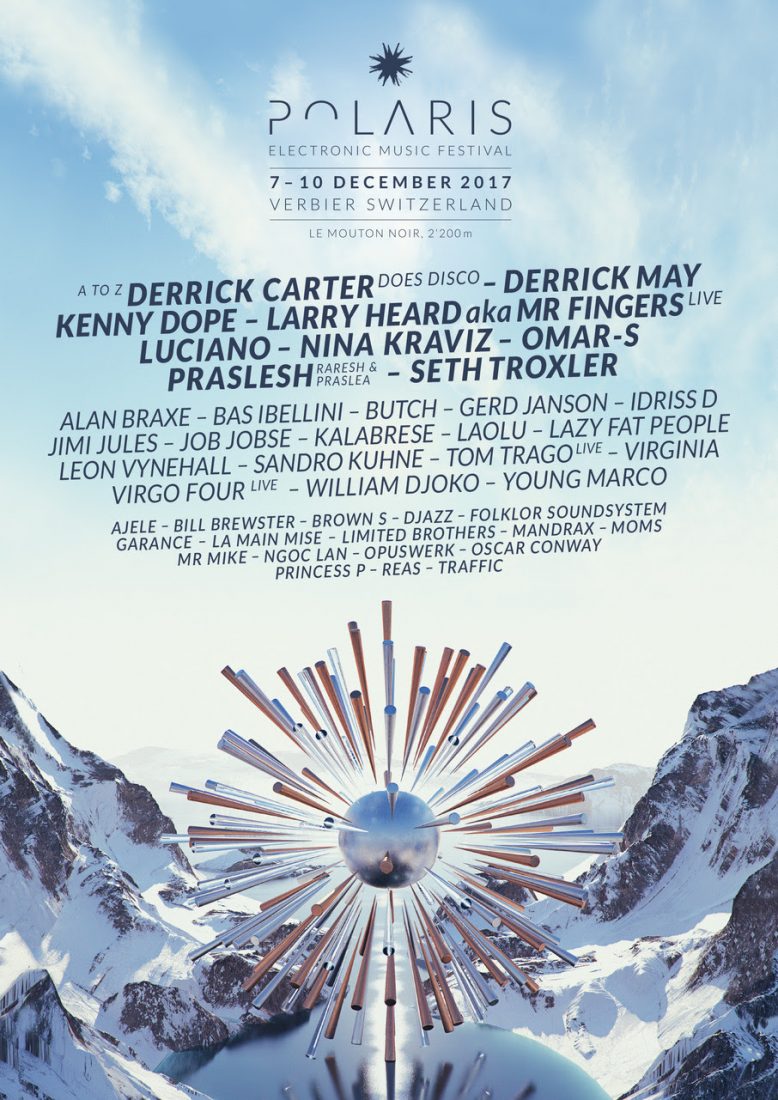 Now in its third year, Polaris will bring some of the world’s legends and rarities of electronic music to the mountain top ski location of Verbier.