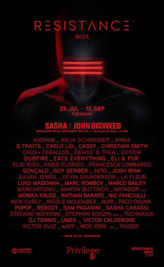 The brand’s first official foray onto the White Isle, RESISTANCE™ will run every Tuesday at Privilege Ibiza from July 25 until the official closing party on September 12, with Sasha and John Digweed leading the charge at the first seven of those eight dates (25 Jul / 1, 8, 15, 22, 29 Aug / 5 Sep).
