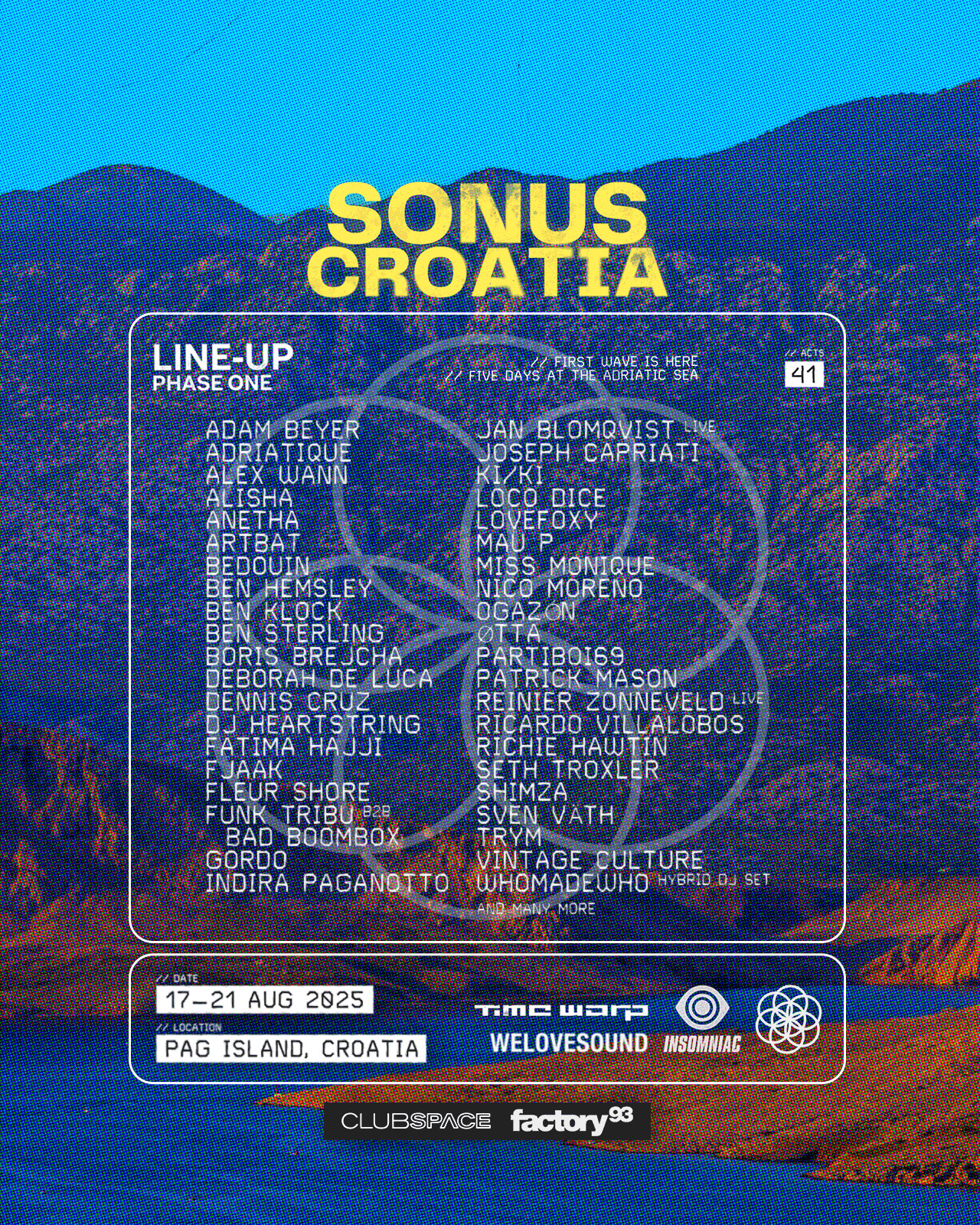 Sonus Croatia 2025 will also see the return of the eminent Space Miami — a name synonymous with discerning electronic music curation and unrivalled afterhours — and LA’s Factory 93, known for its deferential homage to the spirit of the 90s underground, raw warehouse aesthetic, and the myriad spectrum of techno at its heart.