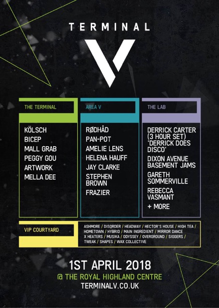 Excitement is building for Edinburgh’s comprehensive house and techno festival Terminal V, and now the full line-up and detailed stage splits can be announced ahead of the Easter Sunday Bank Holiday all-dayer on April 1st.