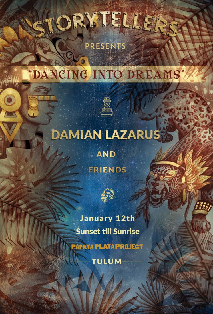 For its world premiere, Storytellers has a fantastic guest, Damian Lazarus, being his only performance in Tulum (Riviera Maya, Mexico) this season. Together they present “Dancing into Dreams”: an immersive experience that combines music, performance, technology and imaginary Mayan in a paradisiacal environment.