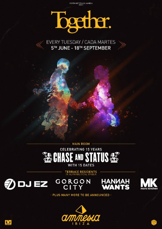 Main room favourites and electronic music giants, Chase & Status return to the main room for 15 dates, to celebrate 15 years of being in the forefront of dance music. The first phase of Terrace acts announced will see Ibiza favourite MK, house giants Gorgon City and Hannah Wants return with DJ EZ making his hugely anticipated return to Together, with 9 dates!