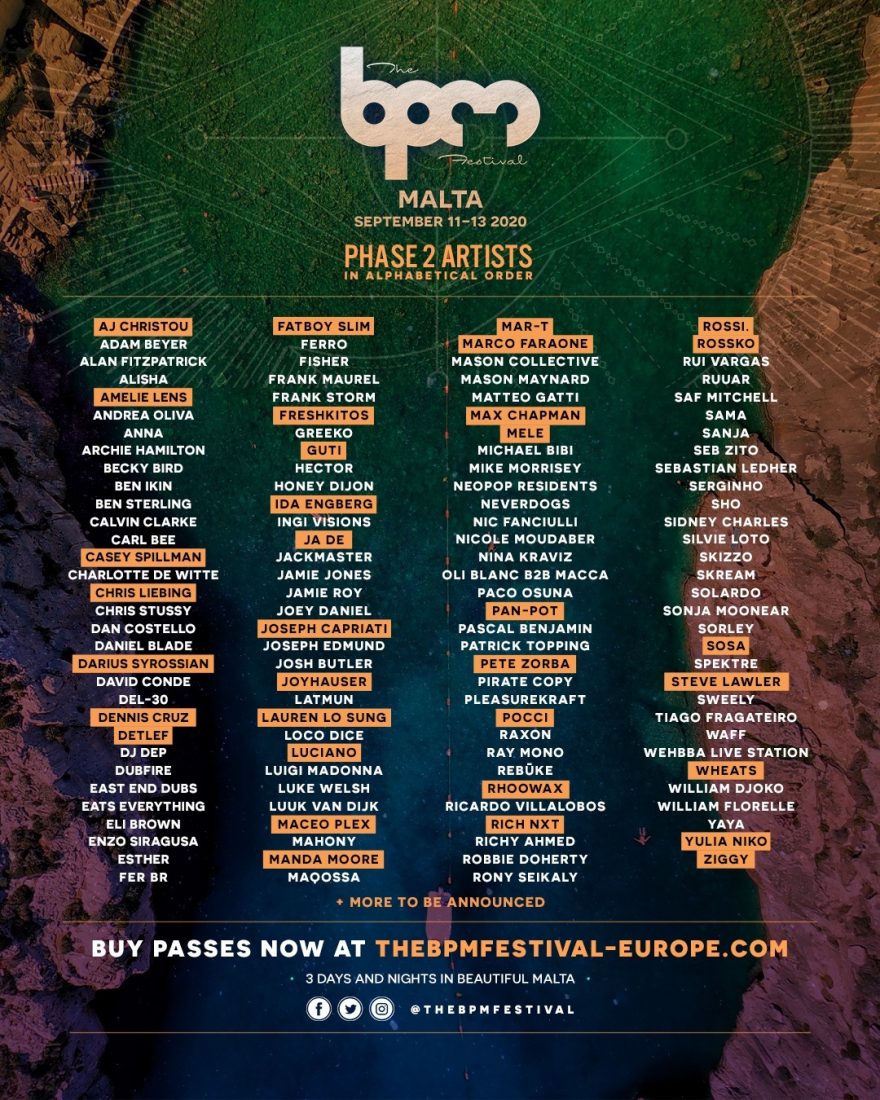 Aquí puedes ver el listado completo de nombres que se han unido a BPM 2020 hasta el momento. El evento se abordará en Malta del 11 al 13 de septiembre. Las entradas están a la venta desde 199€ en la web del festival.