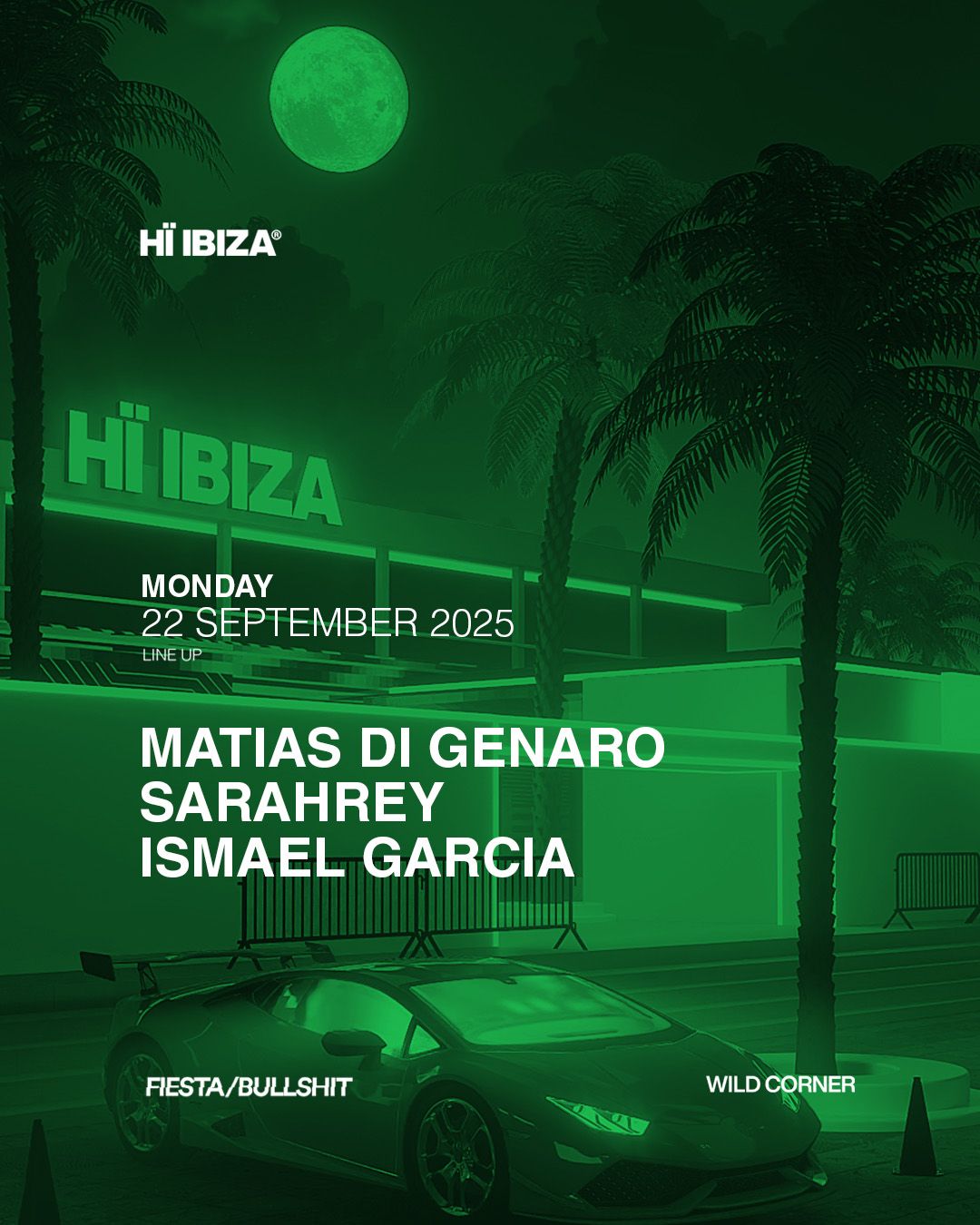 El Wild Corner será de nuevo territorio Fiesta&Bullshit. Nuestro último showcase de la temporada en Hï Ibiza contará con las actuaciones de Matias Di Genaro, Sarahrey e Ismael Garcia, completando una noche que se perfila como una de las más intensas de septiembre.