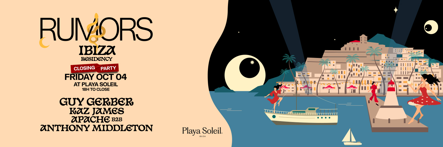 Este viernes 4 de octubre, RUMORS se despide de su segunda temporada en Playa Soleil, consolidándose como la propuesta musical más bohemia y cautivadora de Platja d’en Bossa. Tras su espectacular debut en este club boutique el año pasado, la fiesta se ha afianzado como un éxito rotundo entre los amantes de la música, atrayendo cada viernes desde el 7 de junio a un público ávido de experiencias únicas en este lujoso oasis frente al mar.