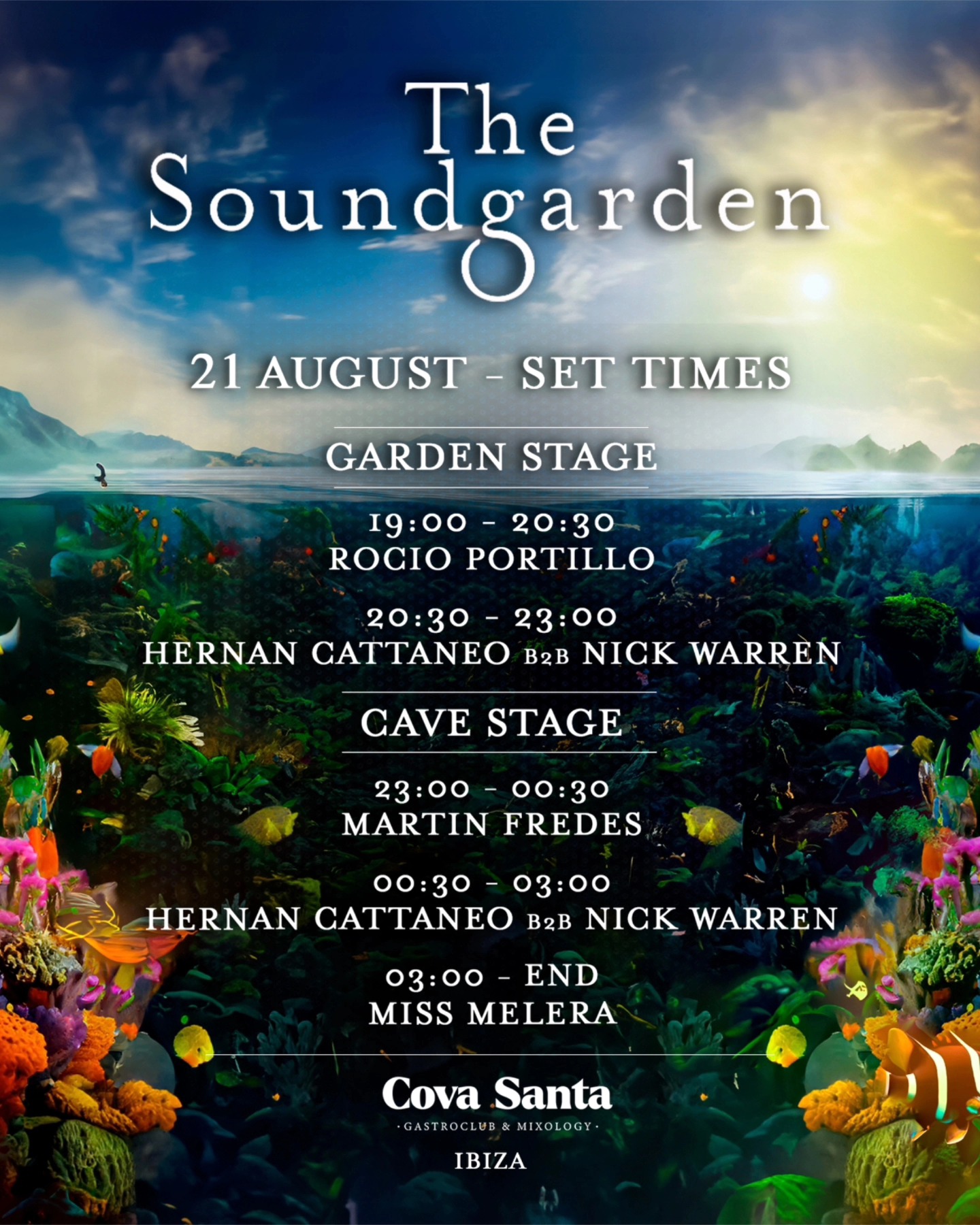 El evento empezara a las 19:00h con el warm up de Rocio Portillo que será la encargada de dar los primeros compases de la tarde a todos los seguidores de la marca The Soundgarden que mañana se darán cita en Cova Santa.