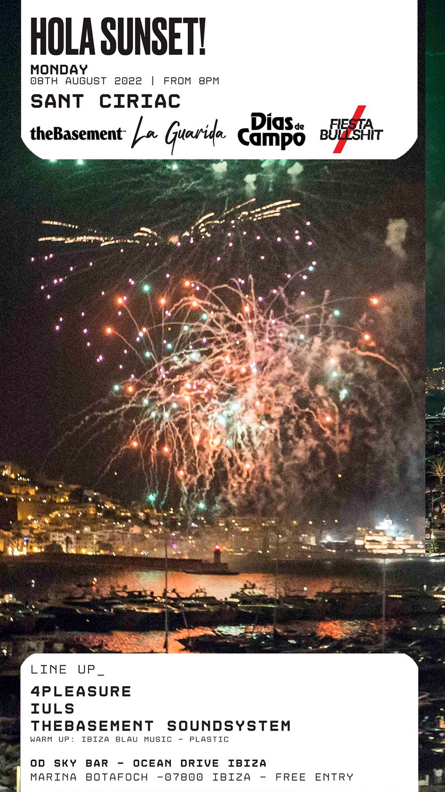 Coincidiendo con la noche de los fuegos artificiales de San Ciriaco, hemos juntado algunos de los principales agotadores de la noche en nuestro país como son: La Guarida BCN meets Días de Campo Festival con el soporte de The Basement que nos traerá su soundsystem hasta el Sky Bar. Además nos acompañara en el line up: 4pleasure, IULS y los ya mencionados anteriormente TheBasement SoundSystem.