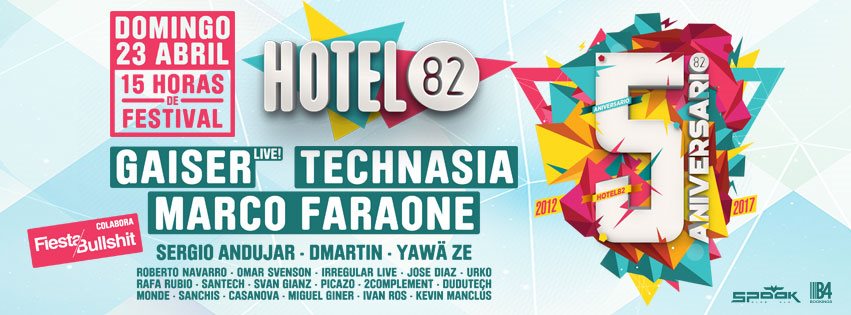 Este pasado domingo 23 de abril, Hotel82 celebro su 5º aniversario con un festival de 15 horas de duración y un line up de artistas invitados ideal para celebrar dicha festividad.