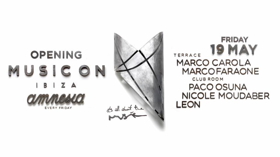 La temporada más larga de Music On hasta el momento, comenzará con un line up envidiable para todos los que aun no están de vacaciones por la isla. Marco Carola, Marco Faraone, Paco Osuna, Nicole Moudaber y Leon, los encargados de hacer este opening 2017.