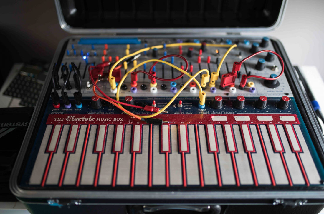 Esta es mi caja loca de la música para los elementos raros que a veces utilizo, es la reedición del Buchla Music Easel que fue lanzado en los años 70 y que sólo fue comprado por locos de la música haciendo cosas experimentales, como yo.