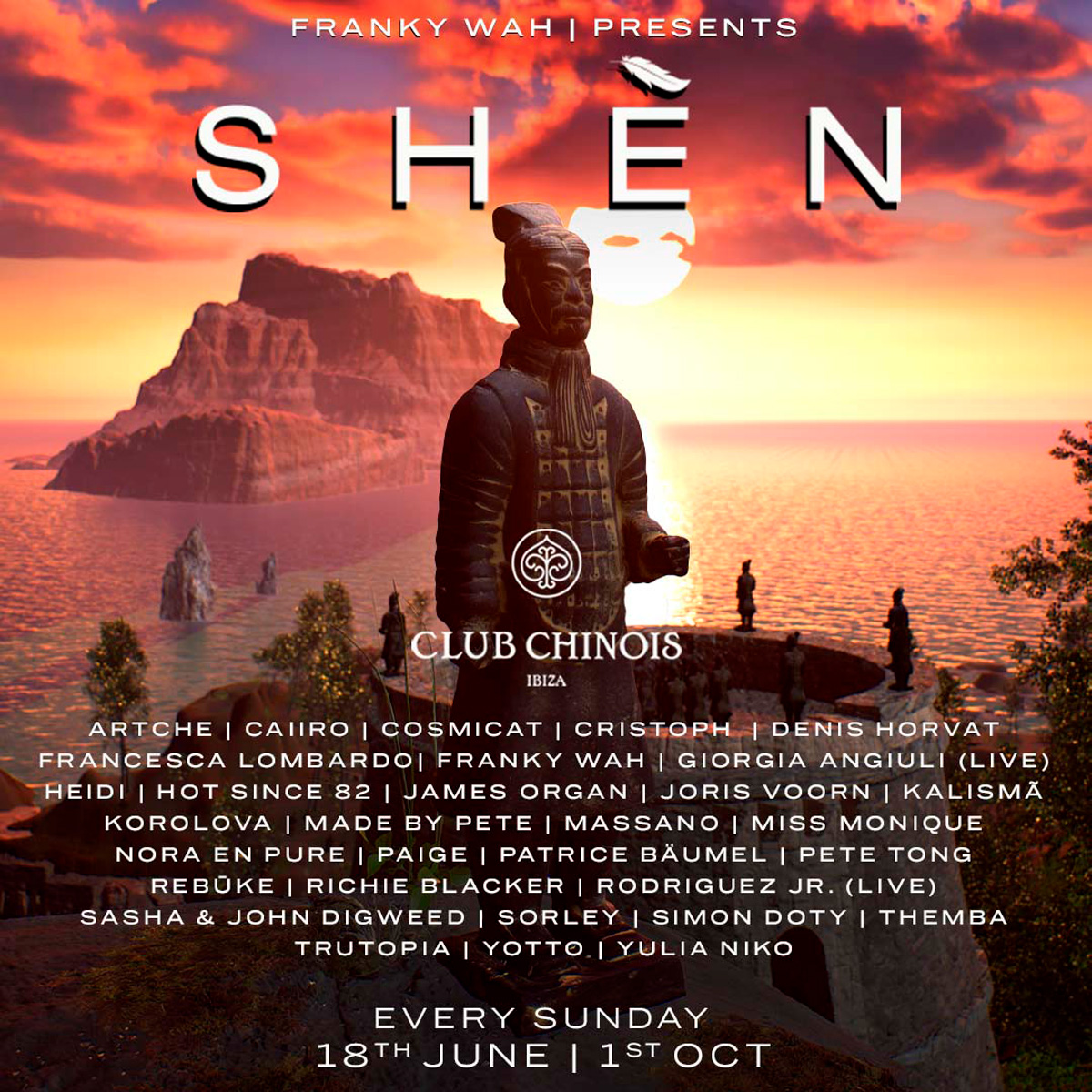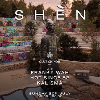Franky Wah toma el control de los domingos en Club Chinois con SHÈN para deleitar a todos los asistentes con sus sets épicos llenos de pasión y actitud, una exhibición impresionante de visuales y una decoración cautivadora inspirada en la antigua China. El DJ nos cuenta que está “emocionado de ser el anfitrión de la residencia SHÈN este verano en Club Chinois y de llevar la marca a la isla. Esto siempre ha estado en mi lista de deseos y cuando comencé con SHÈN, una residencia en Ibiza parecía ser un sueño lejano.Sin duda, este es uno de los momentos destacados de mi carrera hasta SHÈNla fecha”.