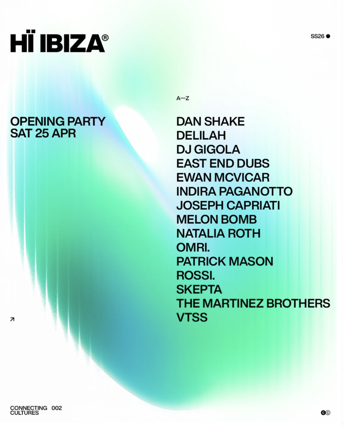JOSEPH CAPRIATI, INDIRA PAGANOTTO, THE MARTINEZ BROTHERS, EAST END DUBS, ENTRE LOS NOMBRES DEL OPENING PARTY DE HÏ IBIZA ESTE 25 DE ABRIL.