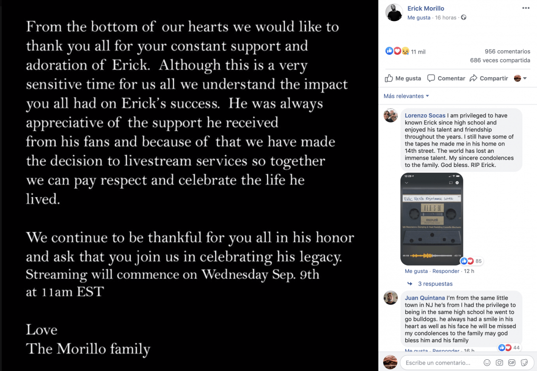 Al post, le han continuado las fotos y los mensajes de fans de todo el mundo, que aun no se pueden creer el dramático final de Erick Morillo hace unos días en su casa de Miami.