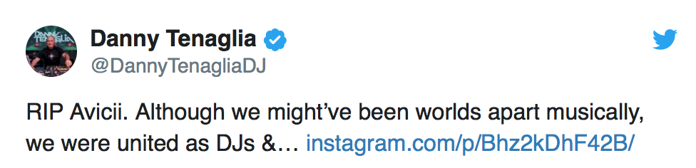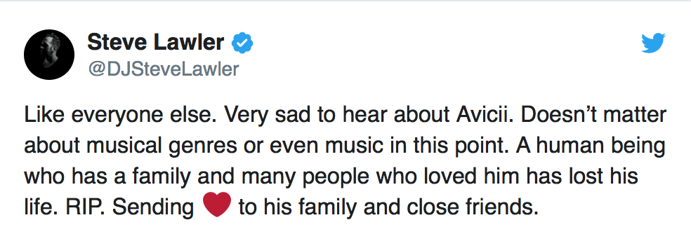 A pesar de la enemistad que suele existir entre los fans de la música más underground y la más comercial, en esta ocasión, artistas de todos los estilos de música electrónica, se han unido y han lamentado esta perdida no esperada. Aquí compartimos con todos vosotros, algunos de los mensajes de apoyo y condolencias de artistas de EDM, House, Techno….