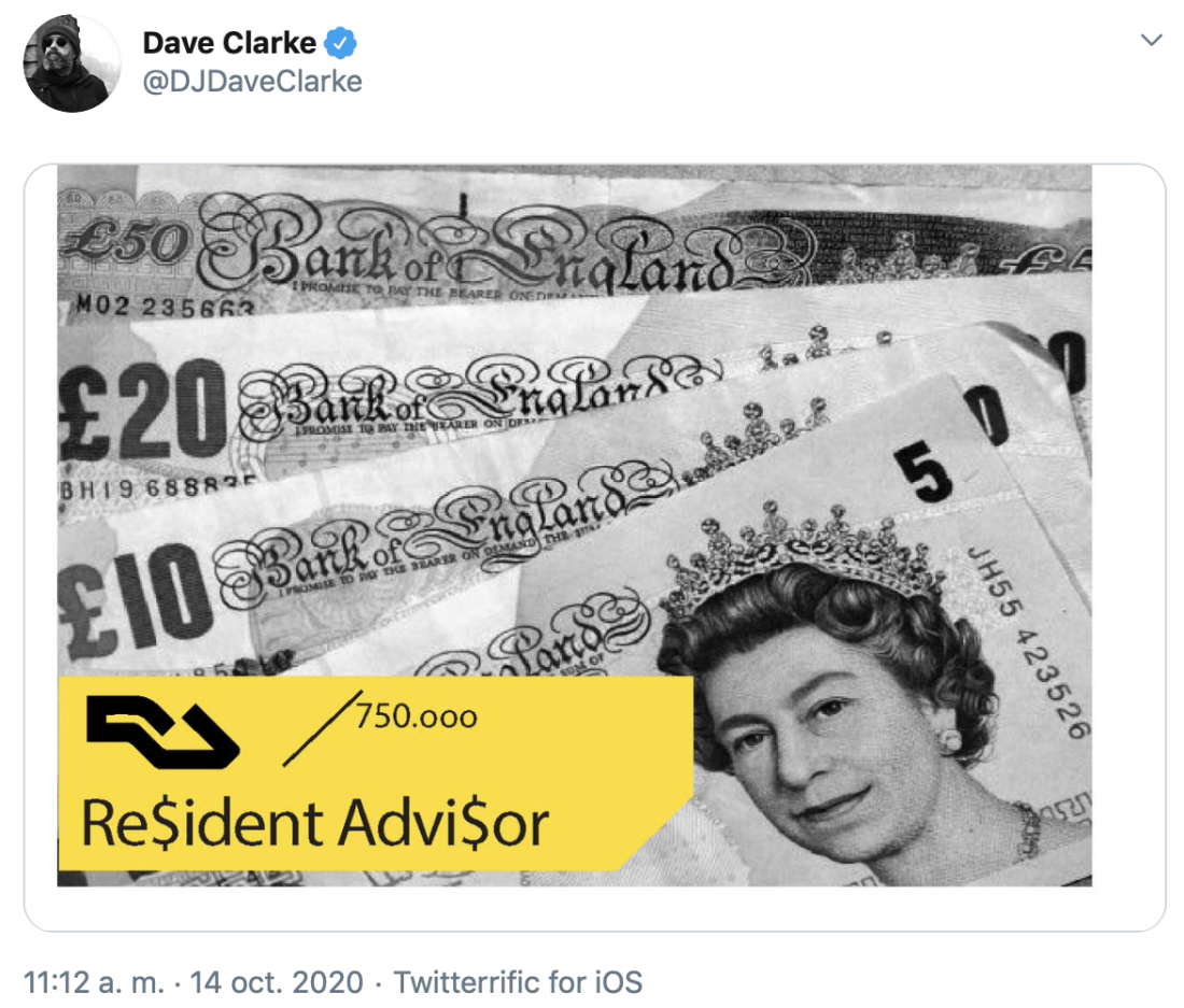 La polémica ha venido por la noticia de que la web y plataforma Resident Advisor ha recibido una subvención de £750,000. Una ayuda que nos debería alegrar, que un medio reciba una cifra tan notable pues siempre es una buena noticia, aunque te pueda generar un poco envidia sana de lo que es recibir ayuda cuando no estas generando ingresos por una pandemia, y lo que ocurre aquí, que es todo lo contrario.