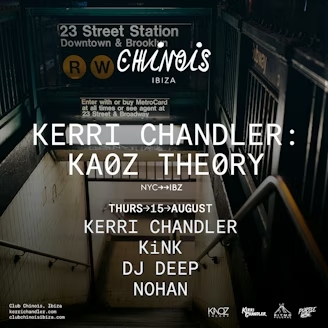 Kerri Chandler, pionero del deep house, es famoso por sus maratónicos sets que superan las 6 horas. Como multiinstrumentista y experto en ingeniería de sonido, Chandler siempre está a la vanguardia de la tecnología de grabación y los sistemas de sonido en vivo. Con una discografía que abarca tres décadas, su dedicación a la música ofrece una experiencia sonora inigualable. Este jueves estará acompañado por Kink, DJ Deep y Nohan.