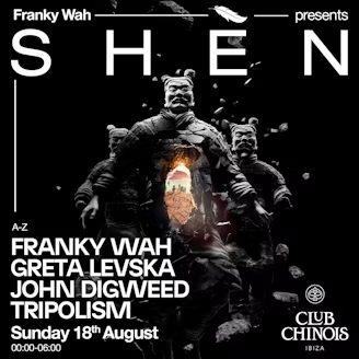 Franky Wah domina las noches de los domingoscon SHÈN, ofreciendo sets monumentales en un entorno inspirado en la antigua China, reflejando su herencia. Franky Wah está redefiniendo el futuro de la música electrónica, combinando artistas contemporáneos de vanguardia con leyendas de la industria. Este domingo estará acompañado de nombres como John Digweed, Greta Levska y Tripolism.