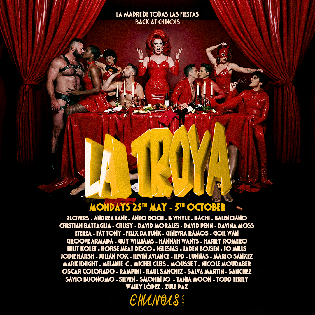 La Troya, la fiesta de culto por excelencia en Ibiza y reconocida a nivel mundial, regresa a Chinois tras un año de ausencia. Y lo hace desvelando el que posiblemente sea el cartel más ambicioso de su historia. Esta deslumbrante programación de 21 fechas dará comienzo el domingo 26 de abril con una fiesta exclusiva de pretemporada, para continuar después todos los lunes desde el 25 de mayo hasta el 5 de octubre.