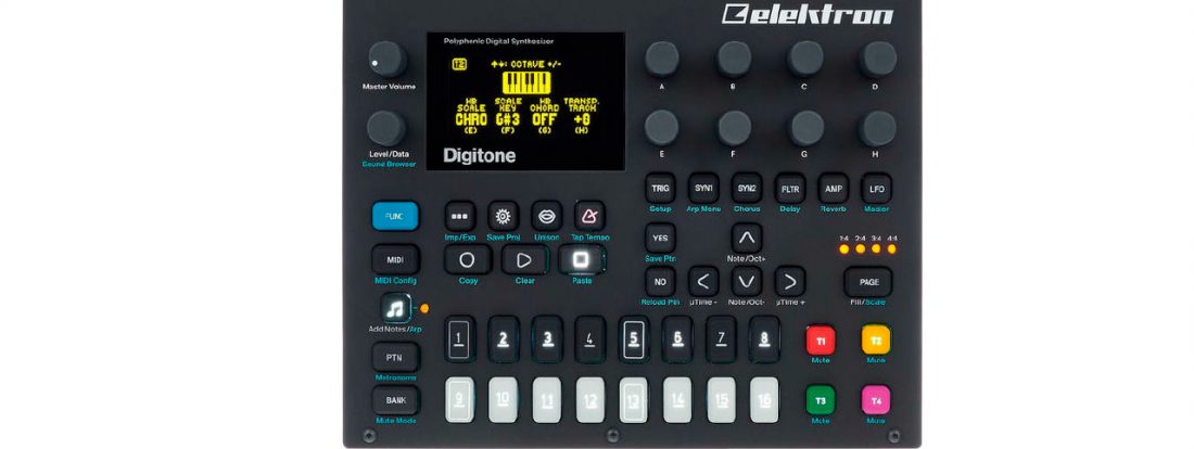 Si hay algún fabricante que puede atribuirse haber dado un golpe en la mesa en los últimos años, ese es Elektron. Desde un tiempo hasta ahora, todas las máquinas creadas por la potente marca sueca, no han dejado de estar presentes en la gran mayoría de setups de los artistas punteros de la escena techno. Hecho que es totalmente comprensible si echamos un vistazo a la calidad que nos ofrece cada uno de los artículos que tienen en el mercado. En esta ocasión, vamos a poner el punto de mira sobre uno de los sintetizadores polifónicos más novedosos del panorama actual. Hablamos del Digitone. Con 64 pasos de secuenciación, 100% digital, y múltiples algoritmos FM, este portentoso instrumento nos ofrece la posibilidad de crear sonidos muy complejos a partir de 8 voces con 2 filtros, overdrive y 2 LFOs por voz. Además cuenta con 8 pistas (4 sintetizador, 4 midi, y posibilidad de ajustar la longitud a nuestro gusto para cada pista), arpegiador individual y opción de grabar todas nuestras automatizaciones instantáneamente.