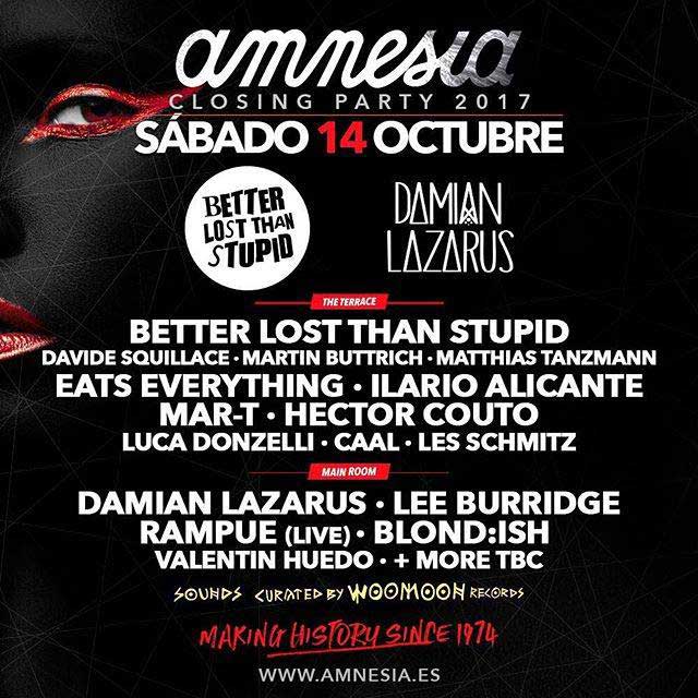La única noticia que se puede destacar de este año, es el retraso de algunos días de un closing como el de Amnesia Ibiza. El local de la carretera de San Antonio ha retrasado su closing al sábado 14 y aunque ha intentado estrujar un poco más su line up con el proyecto de Davide Squillace, Martin Buttrich y Matthias Tanzmann con Better lost than stupid y Damian Lazarus y el concepto de Woomoon.