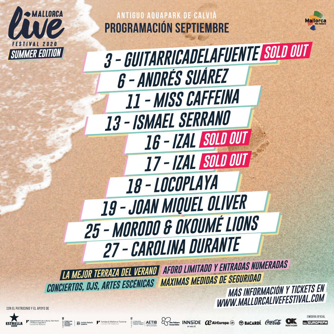 Mallorca Live Summer Edition está siendo un auténtico milagro en este verano sin festivales con más de 10.000 entradas vendidas y cuatro sold out. Izal, la banda más esperada del cartel, vendió en pocos días todos los tickets de las dos fechas que tenía reservadas. Guitarricadelafuente agotó sus entradas el día antes de su concierto y Carlos Sadness también lo hizo poco antes de comenzar su espectáculo.