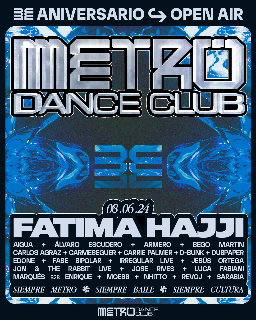 El line up estará formado por un batallón de artistas que respetan la esencia de Metro con Fátima Hajji a la cabeza, escoltada por Aigua, Álvaro Escudero, Armero, Bego Martin, Carlos Agraz, Carmesegue, Carrie Palmer, D-Bunk, Dubpaper, Edone, Fase Bipolar, Irregular Live, Jesús Ortega, Jon & The Rabbit live, Jose Rives, Luca Fabiani, Marqués b2b Enrique, Moebb, Nhitto, Revoj y Sarabia.