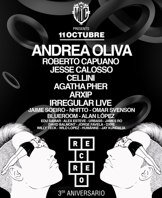 La fecha indicada para celebrar el 3er Aniversario de Recreo será el viernes 11 de octubre y presenta una jornada nocturna+diurna con tres espacios musicales. El capo de Ants, el suizo Andrea Oliva, actuará en el Main Room demostrando el porqué se encuentra en la élite mundial del techno house. Otro de los puntos fuertes de El Patio será Jesse Calosso, quien tras su paso por Music On, BPM Festival o sus repetidos warmup a The Martinez Brothers, reunirá a todos los alumnos a sus puestos de baile.