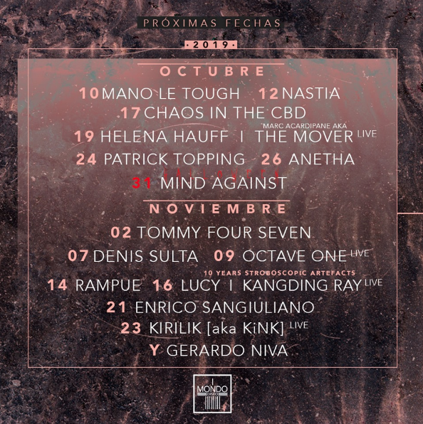 Mondo Disko ha desvelado lo que será gran parte del mes de noviembre. Como de costumbre la calidad y la variedad van de la mano del club que regenta Gerardo Niva.