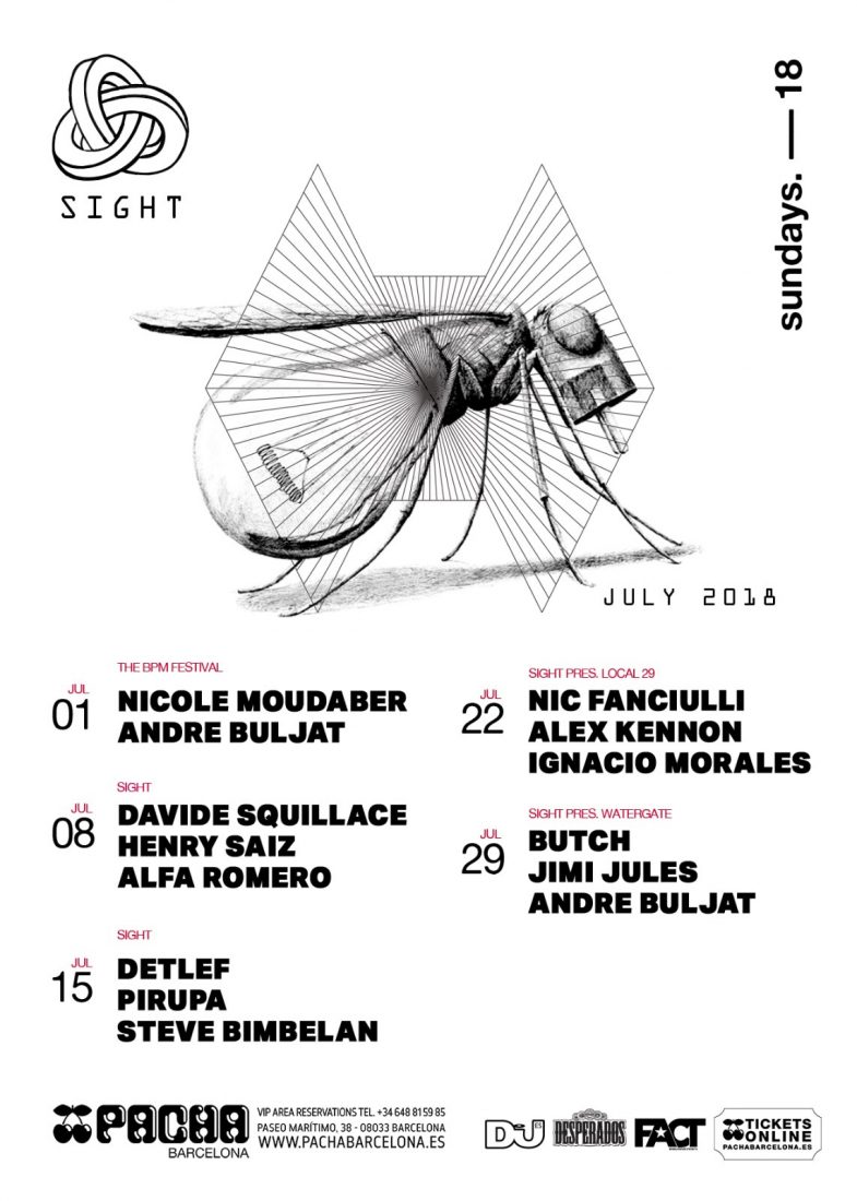 Tras un mes de junio en el que SIGHT se ha situado como una de las fiestas de referencia dentro de la noche de Barcelona – y Pacha como uno de los clubes más potentes de la Ciudad Condal – hay que seguir mirando hacia adelante. Tras un merecido descanso de la resaca dejada por la Off Week, SIGHT continúa con el listón alto y desde el mismo fin de semana del 1 de julio prepara ya una auténtica bacanal de sonidos electrónicos para los selectos oídos de sus asistentes más fieles..