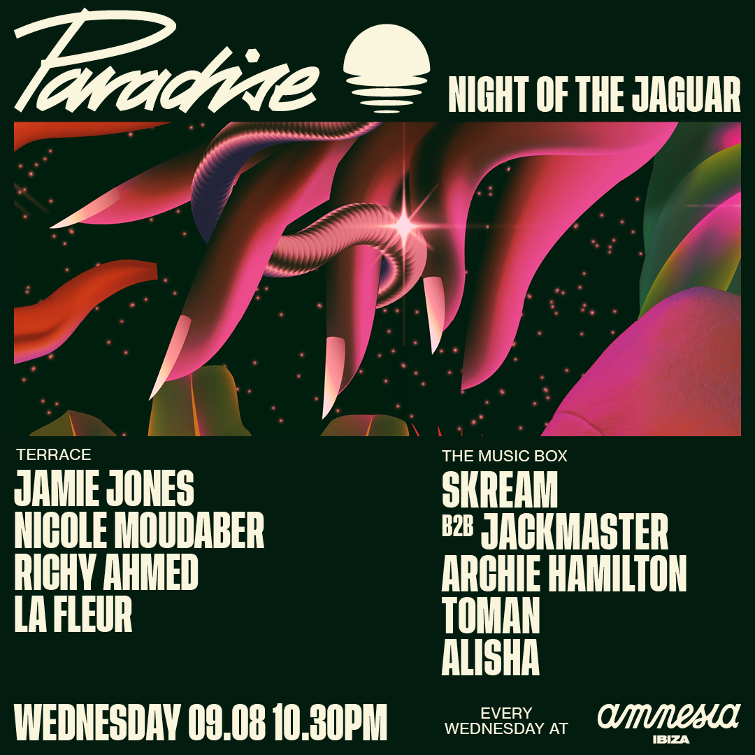La Terraza comenzará a ponerse en ebullición con el set de La Fleur, una artista cuya libertad creativa y una profunda conexión con su entorno han alimentado los esfuerzos artísticos desde su infancia. Nacida en la ciudad sueca de Örebro, abandonó la carrera de farmacia para centrarse en la música a tiempo completo, y pronto lanzó Power Plant, que se convirtió en un caldo de cultivo multidisciplinar para sus innumerables actividades creativas. Para continuar con el subidón de energía Richy Ahmed se subirá a la mítica cabina de Amnesia para demostrar porque es uno de los DJs más queridos del momento. Las credenciales de Richy Ahmed lo sitúan a la altura de los artistas británicos más exitosos de su generación; con los pies en la tierra, trabajador, lleno de risas y resuelto en su compromiso con la cultura de la música electrónica, su legado sigue difundiendo el amor y la positividad en toda la comunidad mundial de la música de baile. Nicole Moudaber será una de las grandes protagonistas de la noche, una artista genuina, compasiva, luchadora y tan real como puede ser. La imagen pública de Nicole y su sinceridad han creado un fuerte vínculo entre la formidable DJ y sus fans. Es un nivel tácito de entendimiento centrado en el amor, la angustia, la pena, la alegría y una lista de otras emociones que se manifiestan en las actuaciones de Nicole. Como fanática de la pista de baile, está preparada para crear recuerdos inolvidables, emocionantes, eufóricos y poderosos. Y por último nos emocionaremos con los sonidos de Jamie Jones mientras los rayos del amanecer se filtren por el techo de la Terraza.