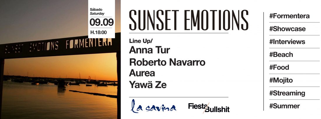 El sábado 09 podremos disfrutar del sunset en uno de los lugares más mágicos de Formentera. Desde el Hostal la Savina y como aperitivo de lo que nos espera por la noche en Tipic, Sunset Emotion es el evento que nos servirá para disfrutar de las ultimas horas del sol con Anna Tur, Roberto Navarro, Aurea y Yawä Ze.
