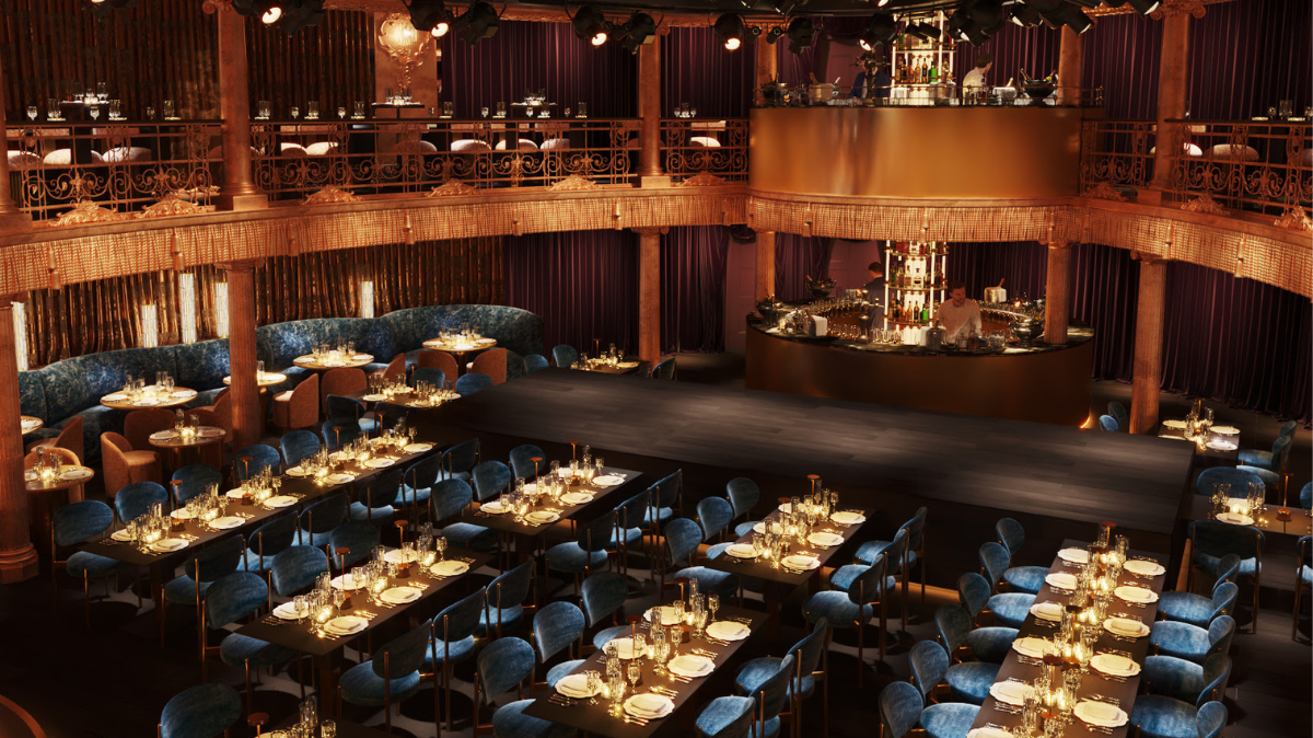 El galardonado estudio de diseño arquitectónico español Lázaro Rosa-Violán está supervisando la transformación, teniendo mucho cuidado para preservar los elementos patrimoniales del edificio catalogado de Grado II, un espacio reconocido como uno de los lugares de eventos y clubes nocturnos más prestigiosos de Londres. Con espacio para 200 comensales, el diseño se muestra glamuroso a la vez que divertido, con techos repletos de espejos y una cabina para el DJ que aparecerá en el centro del espacio. La elegante escalera que data del año 1924 cae en cascada a ambos lados del espacio central. Los invitados pueden sentarse en el corazón de la acción (en el salón) o en el entrepiso envolvente con una vista panorámica de la actuación.