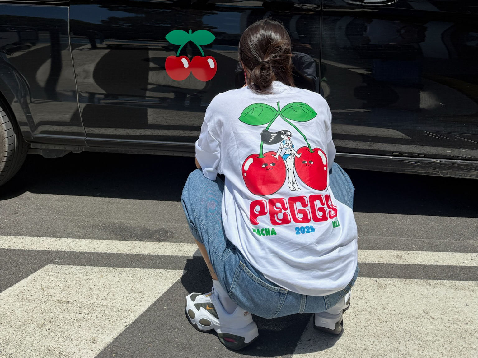 Pacha Ibiza ha lanzado una colaboración en edición limitada con la DJ y productora surcoreana Peggy Gou. Recién llegada de su colaboración con Solomun en su residencia +1 en Pacha Ibiza el domingo (27 de julio de 2025), la camiseta de la colaboración presenta un atrevido «Peggy» gráfico, combinado con las icónicas cerezas de Pacha.