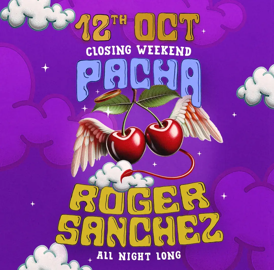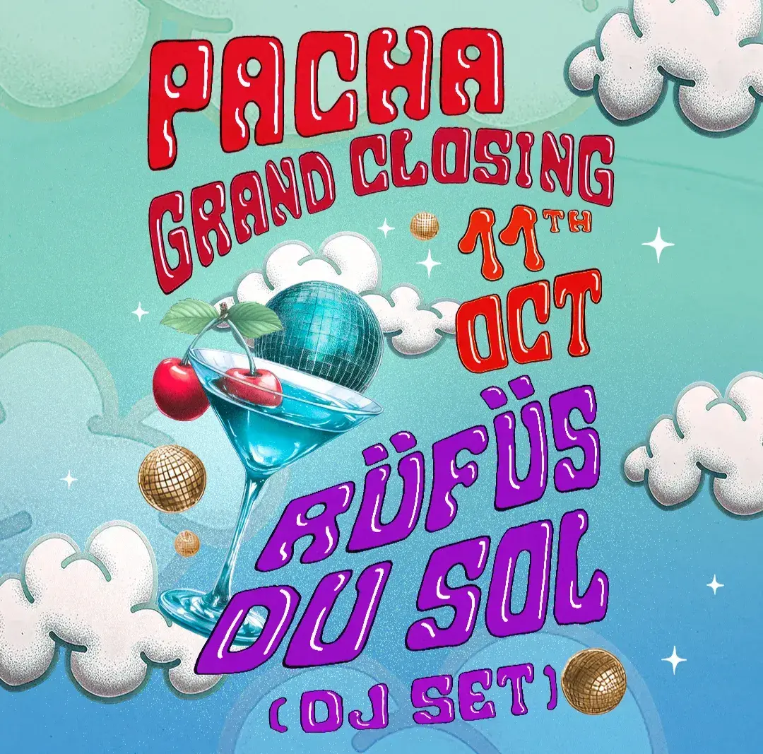 Pacha Ibiza se prepara para despedir otra temporada histórica bajo las icónicas cerezas, con una serie de closing parties que prometen ser memorables. Sonny Fodera, CamelPhat, Mau P, Pure Pacha, Defected, Music On, Flower Power y Solomun +1 se despedirán antes del Grand Closing Party Weekend, que tendrá lugar el sábado 11 de octubre con Rüfüs Du Sol y el domingo 12 de octubre con Roger Sanchez.