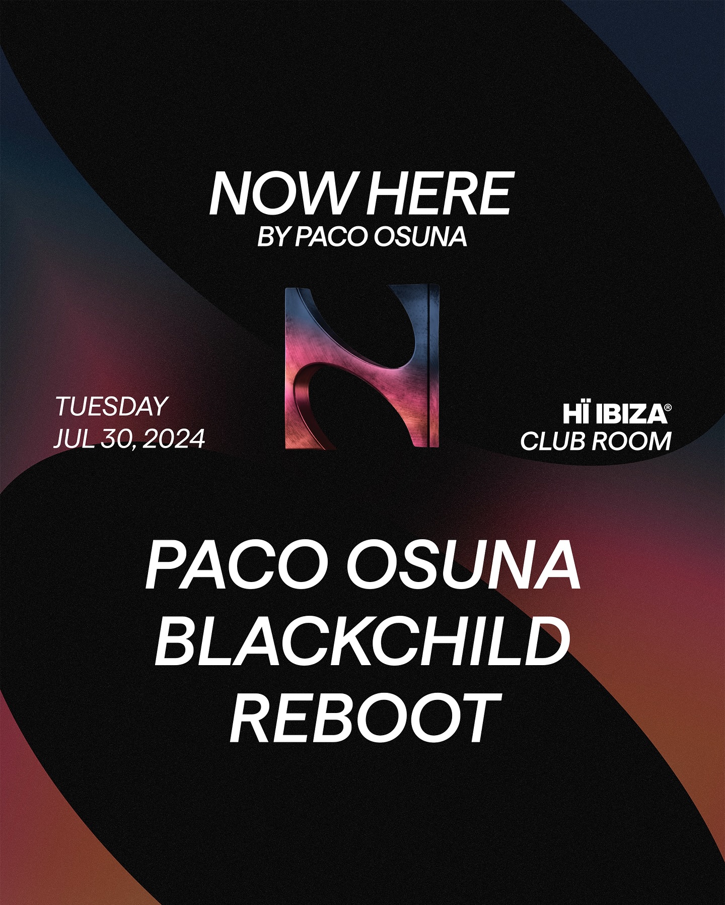 Mañana, 30 de julio, Hï Ibiza será el epicentro, un martes más, de NOW HERE con Paco Osuna que contará con la participación de dos destacados DJs: Blackchild y Reboot. Estos artistas se unirán a Paco Osuna prometiendo una noche llena de energía y ritmos vibrantes.