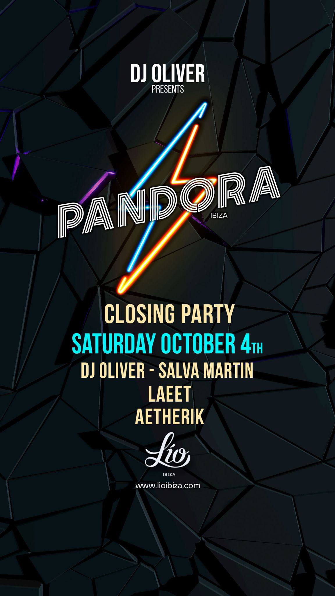 Tras 22 semanas de residencia, Pandora cierra un verano intenso y lleno de emociones, con una despedida pensada especialmente para el público local que ha llenado el club cada sábado. El cartel de la fiesta contará con la participación de su equipo de DJs residentes: DJ Oliver, Salva Martín, Laeet y Aetherik, encargados de marcar el ritmo de la última noche de la temporada.