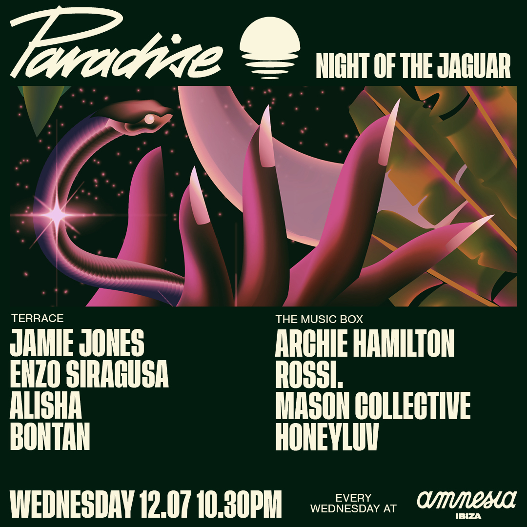 La Terraza de Amnesia en Paradise es un hervidero de emociones, gracias a la atmósfera que generan los miles de clubbers que asisten entusiasmados por vivir una fiesta inolvidable. La banda sonora en la mítica sala estará a cargo de artistas como Alisha, una mujer meticulosa en su enfoque musical y esto se refleja en el calibre de los sellos que han firmado con Kaluki y Eastenderz su exitoso EP titulado Visions. Junto a ella estará Bontan, que se ha convertido en uno de los artistas que más discos ha vendido en Beatport, ha ganado el premio al mejor debutante en los DJ Awards y se está adueñando de la escena house underground con una serie de lanzamientos en sellos como Hot Creations, 20/20 Vision, Elrow Music y Circus Recordings. Su historia es inspiradora para cualquiera que quiera dejar su huella en la música de baile, es la prueba de que a la gente buena le pasan cosas buenas. Uno de los momentos más importantes de la noche será la actuación de Enzo Siragusa, porque cuando se trata de la cultura rave, no hay muchos artistas tan apasionados y entregados como Enzo. El londinense es el cerebro detrás de una de las marcas de fiesta más infames de la capital, Fuse, un evento que ha utilizado para cultivar un sonido inconfundible, atrayendo a un público fiel y entregado en el proceso. Sus raíces se encuentran en el jungle y el drum n bass, ese sonido puro y sin diluir que surgió del centro de Londres a mediados de los noventa. Y como no podía ser de otra forma, Jamie Jones cerrará la noche con una de esas actuaciones indescifrables, con ese estilo tan personal y empático que le han convertido en uno de los DJs más queridos de Ibiza.