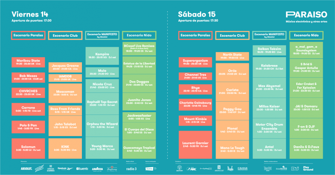Paraíso presenta los horarios de su segunda edición, dos jornadas de 12 horas cada una,de 17:30 a 5:30h, en las que el público podrá disfrutar de 49 actuaciones musicales en 4escenarios.