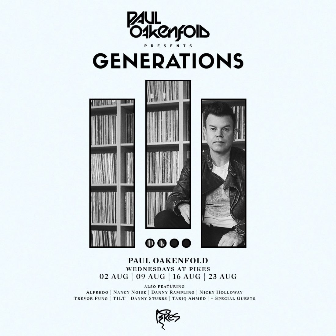 La gira Generations World hace parada en Pikes, con una residencia de 4 semanas que comenzara el Miércoles 2 de agosto. Después de confirmar la residencia de Dj Harvey, Pikes tendrá una nueva referencia para sus noches de verano en Ibiza.