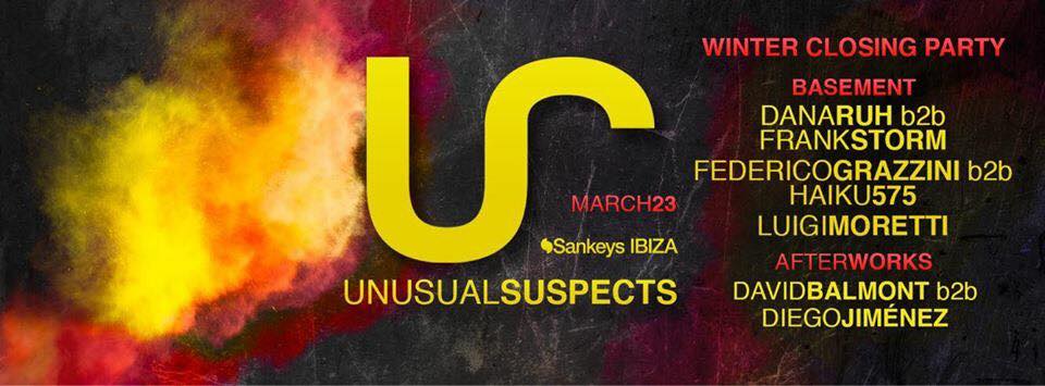 Además esta semana, concretamente el jueves 23, Unusual Suspects celebra su closing invernal con un cartel de lujo en el que podremos escuchar a: Dana Ruh b2b con Frank Storm, Federico Grazzini b2b Haiku 575, Luigi Moretti, Diego Jiménez B2B David Balmont, Ras Moses El Shaman b2b Toni n’ Peter, Jada, Sabaluna, Rolando Takeshi y Dave Mantra entre otros.